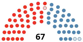 Other seats are filled to achieve other types of fairness. If a party wins a majority of first preference votes but fails to achieve a parliamentary majority, they are awarded seats to ensure a one-seat majority, if they are one of only two parties to obtain seats.[26] As well, 12 seats are awarded to unsuccessful candidates of the "under-represented gender" if it receives less than 40 percent of the seats.[27] Thus the Maltese parliament in total has 79 members.