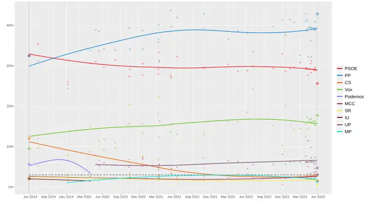 - ^ "Encuesta Preelectoral Elecciones Autonómicas 2023. Región de Murcia". CEMOP (in Spanish). 22 May 2023.