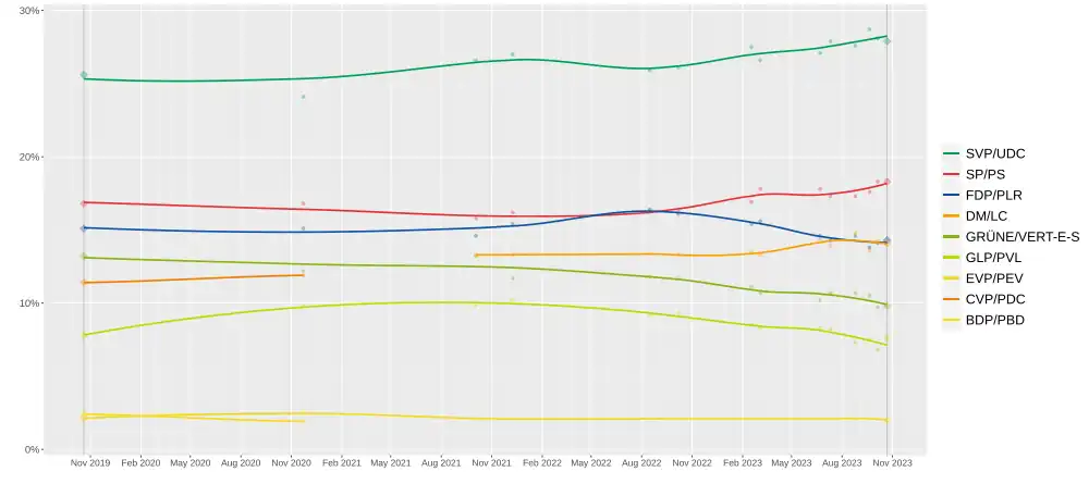 - ^ "SRG SSR Wahltagsbefragung 2023" (PDF) (in German). Retrieved 29 October 2023.