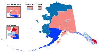 On November 6, the day after the election, Independent Bryce Edgmon announced that a new majority coalition would be formed based on preliminary results.[11] Once results finalized, Edgmon announced that he would serve as speaker, a role he previously held from 2017 to 2021, and Republican Chuck Kopp would serve as majority leader of the new majority coalition consisting of 14 Democrats, 5 Independents, and 2 Republicans.[12] The remaining 19 Republicans would caucus in the minority. Eastman, the sole Republican who did not caucus with either side, lost re-election to Republican Jubilee Underwood.[13]