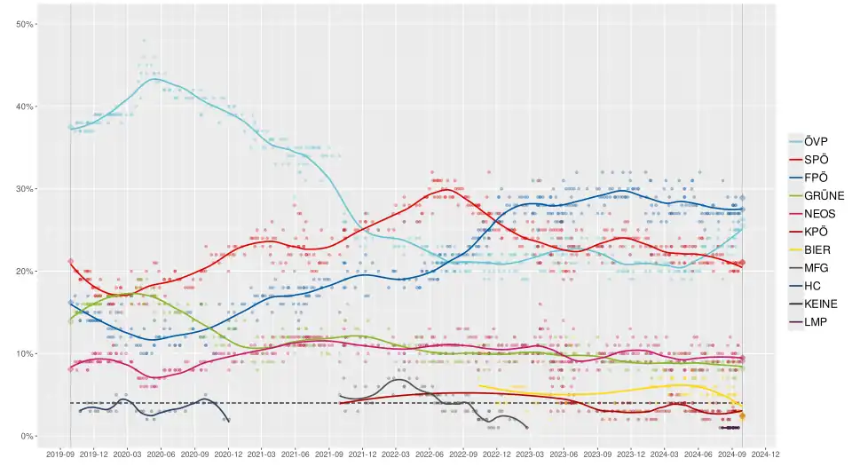 - ^ "Umfrage: Bei Neuwahl könnt FPÖ 30-%-Marke knacken". oe24.at. 4 October 2024. Retrieved 4 October 2024.