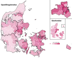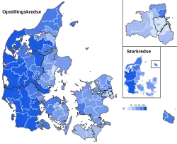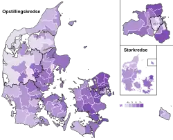 The election used the 92 Folketing nomination districts for administrative and statistical purposes, but they had no impact on the distribution of seats as Denmark forms a single nationwide constituency for European Parliament elections.[18]