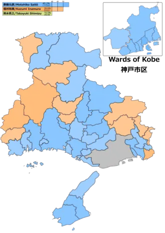 | Awaji | 8,689 | 44.3% | 7,787 | 39.7% | 2,368 | 12.1% | 452 | 2.3% | 168 | 0.9% | |