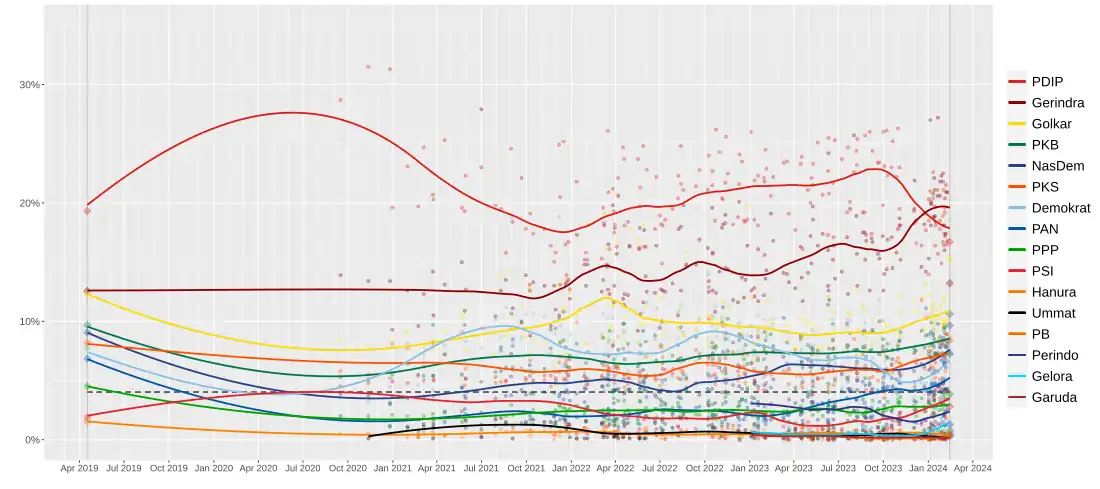 - ^ "Pemerhati Ungkap Alasan Suara PDIP Turun Drastis". RRI (in Indonesian). 23 March 2024. Retrieved 13 April 2024.