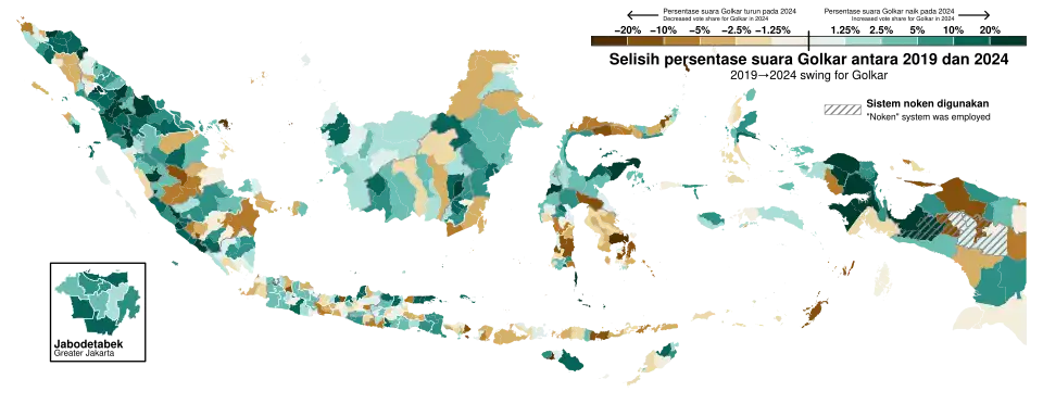 - ^ "Pemilu 2024 vs 2019: PDIP Turun 6%, Golkar Terbang 34%, PKS Naik 11%". CNBC Indonesia (in Indonesian). 22 March 2024. Retrieved 27 March 2024.