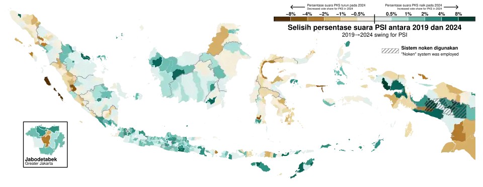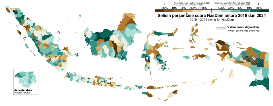 The 2024 legislative election also marked the fourth consecutive increase in parliamentary seats for Gerindra since its first participation in 2009. Similarly, the National Democratic Party (NasDem) saw its third consecutive gain in seats since it first contested a legislative election in 2014.