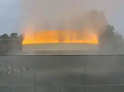 For the first time, as part of goals to reduce carbon emissions, the cauldron did not contain an actual flame generated via combustion. Instead, the presence of the Olympic flame was simulated via an LED lighting system, consisting of 40 lamps illuminating a cloud of mist generated by 200 water jets. The system was developed in partnership with Électricité de France (EDF), France's state-owned energy company.[4] During the Olympic Games, the Olympic flame was kept in the same lantern in which it traveled from Greece to French territory through the Mediterranean Sea in May 2024 and was protected by armored glass on display to the side in a small podium at the garden.[9][10]