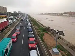 The 1957 flood resulted in at least 81 fatalities.[6] In response, the government of Francisco Franco initiated work on a "Southern Solution" (Spanish: Solución Sur), a giant canal to reroute the Túria River around the south of the city centre, three kilometres from its original course.[6] From 1964 to 1973, the Franco government built the new 12 kilometre long, 175 metre wide channel, capable of draining 5,000 cubic metres of water per second.[6] The Southern Solution was later revised from a hydraulic engineering project into a comprehensive Southern Plan (Spanish: Plan Sur) which also included roads, railways, and other urban development projects.[6] Since then, the Southern Plan has shielded the city centre, but did nothing to protect the rapidly growing towns to the south.[7] In 2008, a hydraulic infrastructure program was proposed to protect the southern towns, at a cost of about €200 million.[7] Very little of that program was ever implemented, leaving those towns vulnerable to severe flooding.[7]