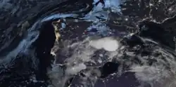 The fourth factor is that climate change had increased the destructive power of the storm in several ways. After the 2024 summer, the record high temperatures of the Mediterranean Sea and Atlantic Ocean caused unusually high levels of water evaporation, that precipitated with record intensity when it came into contact with high altitude cold air arriving from the north. It made the storm 2 times more likely and the rainfall 12% heavier.[13][14] Increasing the flood risk, the hotter recent summers made the soil drier, reducing the ground's ability to soak up water, which facilitates flash flooding. Scientists suggest that climate change may also have caused the storm to move more slowly, creating more rainfall in the same place; the same is said about the central European storm "Boris".[15] The warmer sea waters also increase wind speed during such storms.[16] The warming of the Arctic makes the jet stream weaker, which facilitated the movement of cold arctic air further south, as occurred in this instance, when a pocket of cold air from over Greenland penetrated the warm air mass over Spain. When the cold air from the north meets the warm humid air from over the sea, it creates intense rainfall and strong winds. Climate change warming has also extended the season in which this DANA phenomena can occur: from only November, to anytime in the year.[17]