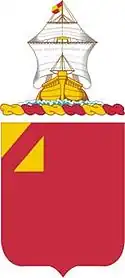 The crest is taken from the arms of the Panama Canal, indicating the place the 22nd Field Artillery was organized.