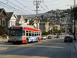 A route 24 trolleybus on Castro Street atop Dolores Heights, September 2020 | ||||