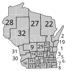 | 29 | Green Lake, Marquette, Waushara counties | Adams , Juneau, Portage, Wood counties |