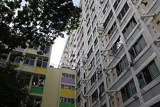 ![]() Kwai Yan House (pictured in 2021) is rebuilt from Block 5 of Kwai Fong Estate, one of the first blocks embroiled in the scandal | |