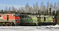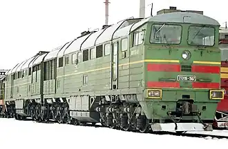The 2TE116 is a broad gauge double diesel locomotive manufactured by Luhanskteplovoz, used extensively to haul heavy freight trains in the Soviet Union and its successor states, particularly by RZD.[1]