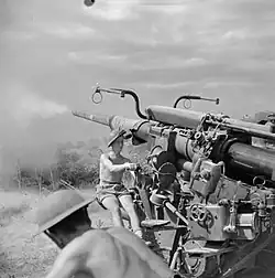 The utility of the 3.7-inch gun for medium artillery work, and the declining threat from the Luftwaffe, meant that HAA units were increasingly used in the ground fire role. Despite the confusion in titles, 2nd AA Brigade actually operated as '2nd AGRA (AA)' in the later stages of the campaign.[13]