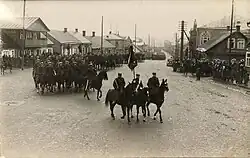 ![]() The Uhlan regiment's parade in Alytus' Vilnius Street in 1936 | |