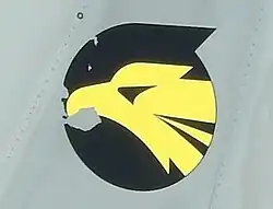 The squadron's aircraft carry a golden eagle as their tail marking, inside a stylized "6" indicating the 6th Air Wing. The golden eagle can be found in the mountains near Komatsu air base, and is also the prefectural bird of Ishikawa.[2]