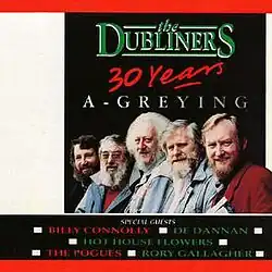 30 Years A-Greying is a double album by The Dubliners, again produced by Eamonn Campbell. 30 Years A-Greying is similar to 25 Years Celebration in that it also features a number of special guests. The Pogues featured again, this time on a version of "Whiskey In The Jar". Other special guests are Billy Connolly, De Dannan, Rory Gallagher and the Hothouse Flowers.