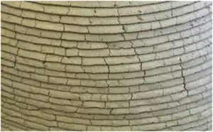 For 3D printed concrete, the structural properties are largely influenced by the interlayer bonding performance. Increasing the print speed and printhead height can reduce the interlayer bond strength while adding a mortar between the layers can improve this strength. In particular, a resin mortar composed of black charcoal, sulfur, and sand has been found to be effective.[29]