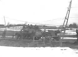 The greatest test of the TD battalions and their M5 guns came during the Battle of the Bulge. In this battle, towed tank destroyer units fought much less successfully and suffered much higher losses than self-propelled ones. In the First U.S. Army, tank destroyer losses were 119, of which 86 were 3-inch guns. In defensive actions against German tank attacks, self-propelled tank destroyers succeeded 14 times out of 16, while 3-inch guns did so only 2 out of 9 times. The ratio of friendly to enemy losses was 1:1.3 in towed units, but a much better 1:6 in self-propelled units.[18][19] A report from the aforementioned 823rd Tank Destroyer Battalion said that "tank destroyer guns were one by one flanked by enemy tanks and personnel driven from guns by small arms and machine gun fire". Taking the recent combat experience into account, on 11 January 1945, the War Department confirmed a request to convert the towed TD battalions to the self-propelled form.[20] This decision meant the gradual removal of the M5 from frontline service, a process that continued until the end of the war in Europe.