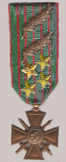 • From the 1914- 18 war cross, two palm leaves, and 4 vermeil stars.