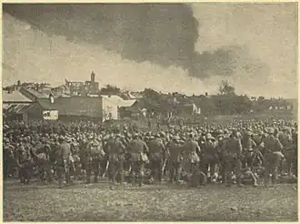 The 3rd Landwehr Division fought on the Eastern Front in World War I. It was on the front in Poland from the early days, and participated in the Gorlice-Tarnów Offensive, crossing the Vistula in July and advancing toward the Bug, and eventually reaching the line between the Servech and Shchara rivers, where the front stabilized. It remained in the line there until the armistice on the Eastern Front in December 1917. Thereafter, the division served in Ukraine and in the German occupation forces in Russia until late September 1918, when it went to the Western Front, serving in the Flanders area until the end of the war. Allied intelligence rated the division as fourth class and of mediocre combat value.[1][2]