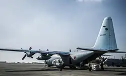 One aircraft participated in December 2015 edition of the US Air Force's Operation Christmas Drop in the Pacific, along with one RAAF C-130J and three US C-130s.[17][18][19][20][21] The JASDF and RAAF also participated in the 2016,[22] 2017,[23][24] 2018[25] and 2019[26] operations.