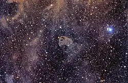 ![]() 41 Tauri is the brightest star on the right of the molecular cloud LBN 777. | |