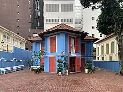 In 1999, the building underwent a $1.3 million renovation under the National Arts Council Arts Housing Scheme, after which theatre organisation Action Theatre moved into the bungalow. The newly-renovated building featured indoor studios, two outdoor performance spaces and two rehearsal rooms. It also featured a cafe.[1] The main theatre was on the bungalow's second floor.[3] The building was officially reopened on 12 November, with diplomat and professor Tommy Koh being the guest of honour at the opening ceremony.[4] Action Theatre moved to the Aliwal Arts Centre in 2012, after which the National Arts Council converted the building into Centre 42, which aimed to "nurture both established and emerging playwrights as well as develop new works."[5] It was to be the first local institution dedicated to playwriting. The building was then painted blue.[6]