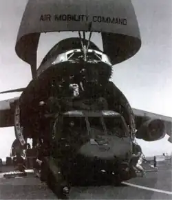In August 1973, the 436 MAW exchanged their remaining C-141s for the 437th Military Airlift Wing's C-5s at Charleston Air Force Base, South Carolina, making the 436 MAW the USAF's only C-5 exclusive wing, with 38 airlifters assigned. This allowed the wing to handle heavy, outsized cargo loads, which the C-141 could not.[10] In October 1973, the 436 MAW was chosen to take part in Operation Nickel Grass, an effort to transport supplies to Israel during the Yom Kippur War.[2] The wing flew 71 missions over a 32-day airlift, delivering Patton tanks, helicopters, howitzers, tractors, and radar systems, totaling more than 22,000 tons of cargo. Aircrews conducted the airlift without in-flight refueling capabilities, and the mission was considered to be the first operational test of the C-5.[9]