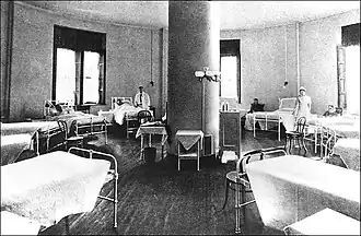Although he died before it opened, J. Marion Sims was much involved in the founding of the hospital. Sims had been president of the American Medical Association and was arguably the country's most famous physician. He had resigned as director of the first Woman's Hospital, which he had founded, when the hospital board forbade the admission of cervical cancer patients.[6]