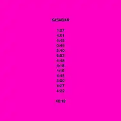48:13 is the fifth studio album by English rock band Kasabian. The album, produced by the band's leader, songwriter, guitarist, and second vocalist Sergio Pizzorno[7][8] (being their first album that Pizzorno produced for the band), and named after its total running time, was released in Germany on 6 June 2014 and in the UK on 9 June 2014.[9][10] The album entered at number one on the UK Albums Chart in its first week of release making it the band's fourth consecutive UK number one album. The album received mixed-to-positive reviews from critics who were divided on the electronic-heavy direction as well as criticising the lyrics.