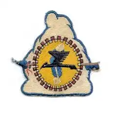 - ^ Approved 17 November 1954. Description: Over a cloud an Indian arrow in pale [sic] all proper. with fastener and feather Air Force blue thereover an Arapahoe Indian tribal shield rawhide with embattled motif edge red and black; the shield charged with a feather of the second [color mentioned] and white, debruised by an Indian bird in flight black.