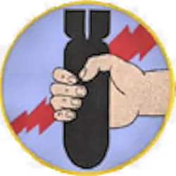 - ^ Approved 10 January 1962. Description: On an Air Force blue disc bordered Air Force golden yellow, a cloud formation divided bend sinisterwise gray and white, an Air Force golden yellow lightning flash issuing from the division to dexter chief, the white part of the cloud surmounted in sinister by a knight's helmet in profile, silhouetted gray; over all bendwise a red and white msssile.