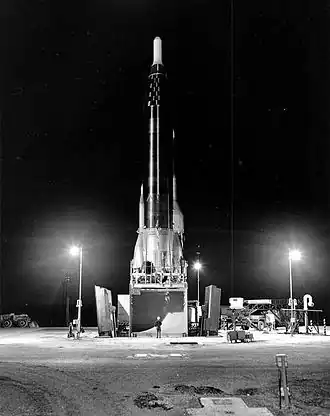 The squadron was redesignated the 578th Strategic Missile Squadron and organized in July 1961 at Dyess Air Force Base, Texas, where it was assigned to the 96th Bombardment Wing.[a] The squadron was assigned twelve missiles, with twelve independent widely dispersed launch sites. The Atlas F used all inertial guidance and had more powerful engines and improved reentry vehicles than earlier models.[14] The Atlas Fs were stored in a silo lift launcher. The missile was stored on its launcher in a hardened silo, but was lifted along with its launcher above ground before launch.[15] The SM-65F was designed for long term storage of liquid fuel and shortened countdown [16]