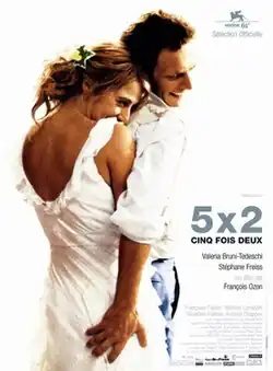 5x2 (also Cinq fois deux; English: Five Times Two) is a 2004 French film directed by François Ozon, which uncovers the back story to the gradual disintegration of a middle class marriage by depicting five key moments in the relationship, but in reverse order.[2]