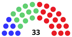 | End of previous Legislature | 9 | 16 | 8 | 33 | 0 |