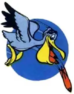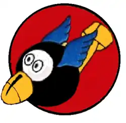 - ^ Approved 12 July 1943. Description: Over and through a medium blue disc, a caricatured penguin light blue, white and black, bill and feet yellow, wearing brown aviator's goggles, diving toawards sinister base, dumping out one of three red aerial bombs, trimmed black, hed in pouch of bill, all emitting white speed lines.