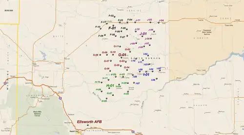 - F-01 61.0 mi NxNE of Ellsworth AFB, SD. 44°59′49″N 102°45′43″W / 44.99694°N 102.76194°W