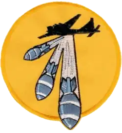 - ^ Approved 6 September 1943. Description: Over and through a yellow-orange disc, a black silhouette four-motor aircraft in sinister chief, dropping a stick of three blue violet aerial bombs to foreground and leaving air stream to rear shaded light blue violet.
