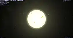 In 1996, 70 Virginis was discovered to have an extrasolar planet in orbit around it.[12] There is also an orbiting dusty disc with an average temperature of 153 K located at a mean distance of 3.4 AU from the star.[13]