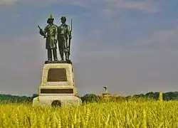 Their monument at Gettysburg shows a statue of a volunteer fireman from the New York Fire Department, which was disbanded in 1865, standing hand-in-hand with a zouave of the 73rd New York Volunteer Infantry Regiment, wearing the uniform of their veteran's organization.