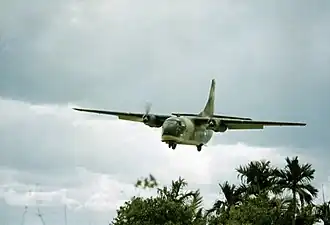 5. ^ Aircraft is De Havilland Canada CV-2B (later C-7B) Caribou, serial 63-9725 of the 535th Tactical Airlift Squadron at Cam Ranh Bay Air Base, South Vietnam, taken in October 1971. This aircraft was later transferred to the South Vietnamese 427th Transport Squadron.