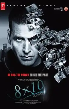 8 x 10 Tasveer (transl. 8 x 10 picture) is a 2009 Indian Hindi-language action thriller film[3][4][5] written and directed by Nagesh Kukunoor, and produced by Percept Picture Company, starring Akshay Kumar and Ayesha Takia. In the film, an Alberta-based forest ranger uses his mental ability to enter a photograph and re-experience the events from a person's point of view to solve the mystery behind his father's death, believed to be caused by natural reasons.