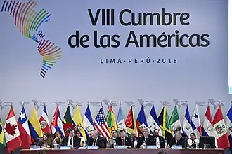 The eighth Summit of the Americas was held in Lima, Peru, from April 13–14, 2018. The main focus of the summit was anti-corruption following the outbreak of the Odebrecht scandal, which affected numerous countries in the region, while attention was also put upon the crisis in Venezuela.[1]