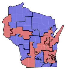 - ^ Republican Margaret Farrow (District 33) resigned after being appointed Lieutenant Governor of Wisconsin.