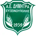 Dimitra Efxeinoupolis is an amateur football and basketball club, located in Efxeinoupoli and was found in 1959. It was formed from the merger of the football clubs Keraunos and Astrapis. The first president of the club was Stavros Laggouras who gave the name to the club. One of the most important presidents of the club was Konstadinos Michalakopoulos (Ελλ.Κωνσταντίνος Μιχαλακόπουλος). The name Dimitra was given because the majority of the citizens are farmers and in ancient Greek Mythology the God Demeter is the goddess of the harvest, who presided over grains and the fertility of the earth, while at the same time it was the name of his youngest daughter Demeter. After two years in B'epsth DIMITRA is now again in the first amateur division. DIMITRA took the promotion with the amazing record of 21-1 W/L. [1] The football club is participating in A'1 Epsth,[2] while the basketball team on A2' Eskath.[3][4] The stadium of the football club is Dimitra Efxeinoupolis and it has a capacity of 1500 attendant (150 seats) [5] while the basketball team use the Public Closed Basketball Court of Almyros, with a capacity of 350 seats.[6]