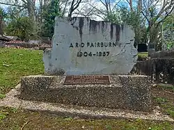 Fairburn's grave in Albany, Auckland, buried together with his mother, Teresa
