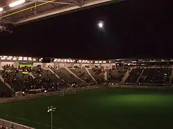 The Bingoal Stadion is a multi-use stadium in The Hague, Netherlands, designed by Zwarts & Jansma Architects.[4] Completed in 2007, the stadium is used mostly for football and field hockey. It is the home stadium of ADO Den Haag and ADO Den Haag Vrouwen. It has a capacity of 15,000 people, and replaced ADO's former stadium Zuiderpark, which was considerably smaller. Due to UEFA's sponsorship regulations, the stadium is named ADO Den Haag Stadium for European matches.