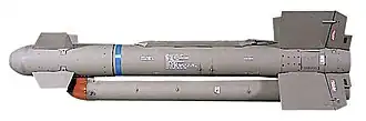 The AGM-130 is a powered air-to-surface missile designed for strikes at long range against various targets. It is essentially a rocket-boosted version of the GBU-15 bomb,[4] with the rocket motor increasing the launch range and so giving the launch aircraft protection from whatever defenses may protect the target. Two can be carried by the F-111 and F-15E.
